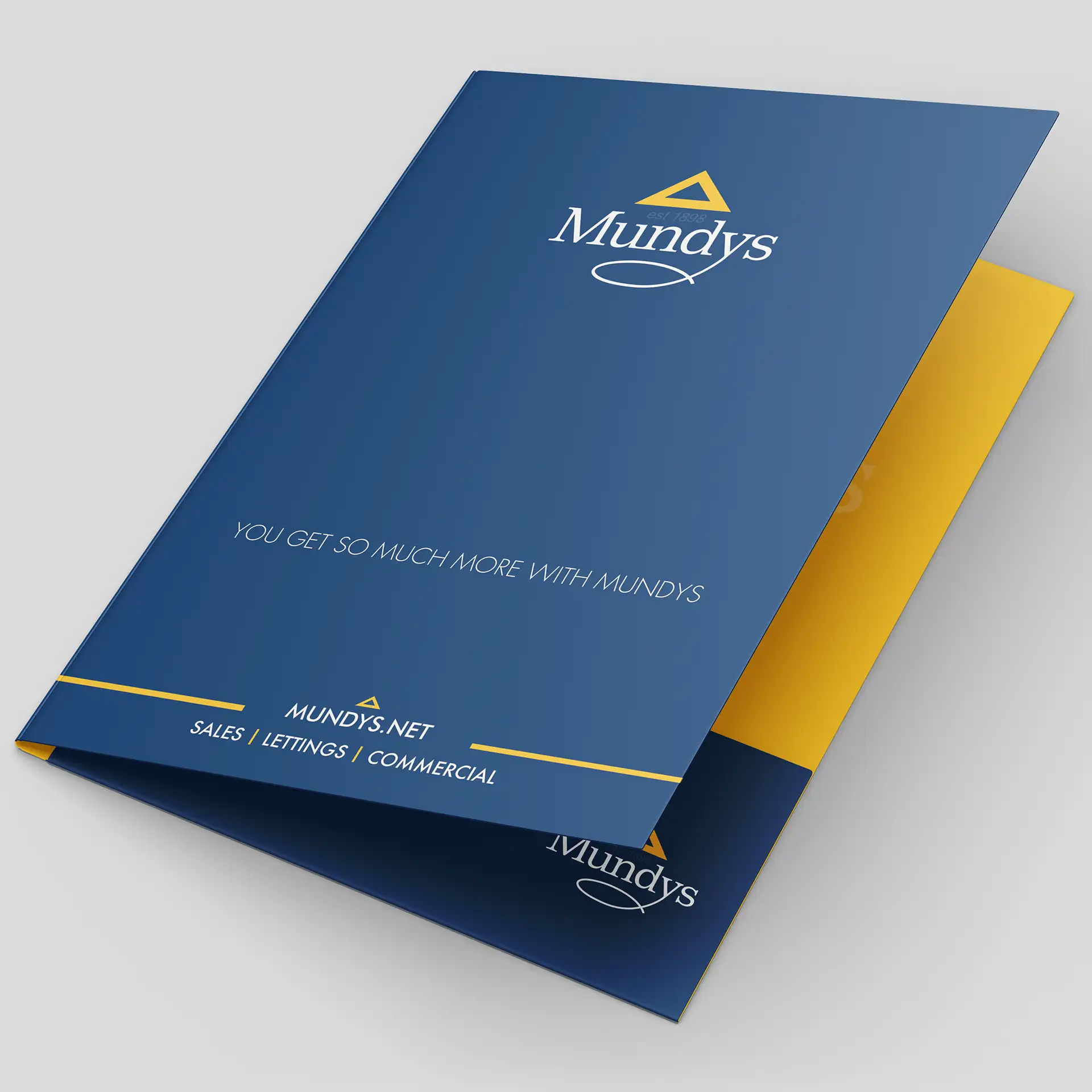 We delivered a complete graphic design solution for Mundys Estate Agents through the creation of a bespoke A4 company folder. From initial concept to final production, the team ensured the design aligned perfectly with Mundys’ professional brand identity. They developed a clean, modern layout that highlighted the company’s core services while maintaining a polished, corporate aesthetic. Attention to detail was central to the process, with careful consideration given to typography, colour consistency and imagery that reflected the estate agent’s trusted reputation.
